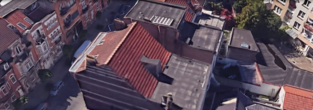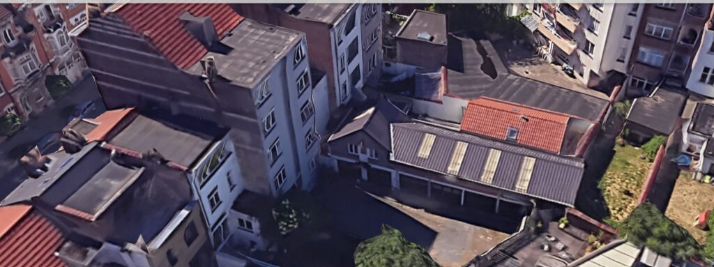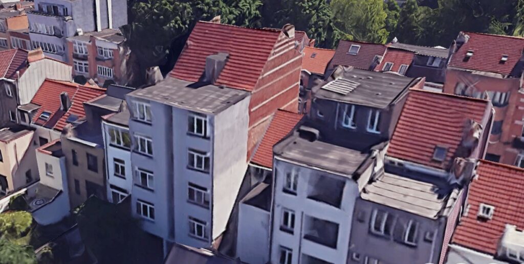 La fin de la rue côté pair est occupée par un vaste immeuble à appartements (architectes R. Tielemans et P. Winand, 1966).